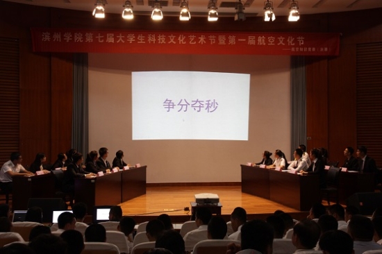 本次主题为“营造校园航空文化,成就学子航空梦想”的航空知识竞赛作为极具航空特色的文化活动,吸引了学校大批热爱航空知识的青年学子来到现场观看。本次决赛分为个人赛―“初露锋芒”、“争分夺秒”,团队赛―“团队一站到底”两个环节,比赛既能有效考察参赛学生对航空知识的了解程度,又能检验团队的默契与协作能力。在团队比赛中,现场比赛气氛激烈,航空工程学院与飞行学院两支代表队发挥异常出色,将比赛带入高潮。比赛中穿插的互动环节,使得场内原本激烈的比赛气氛轻松活泼了许多。经过紧张激烈的竞答,最终,飞行学院代表队凭借稳定的发挥和出色的应变能力突出重围,荣获特等奖,航空工程学院代表队荣获一等奖,BB贝博艾弗森官方网站代表队、化学工程学院代表队荣获二等奖,机电工程学院、教师教育学院、建筑工程学院、外语系荣获三等奖。
