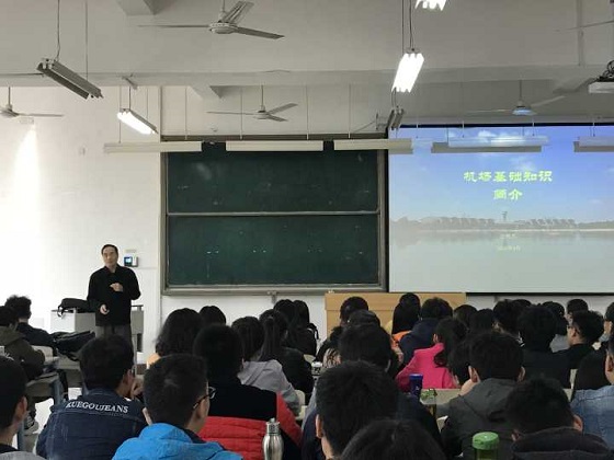 韩院长首先传达了认知实习工作方案,并对实习环节中的注意事项、实习报告的撰写做了说明。她要求所有实习同学要积极配合学院完成本次实习工作,要认真听取相关企业实习安排,遵守实习纪律,认真完成实习报告,并要求同学们要保持良好形象,展现BB贝博艾弗森官方网站学子的良好精神风貌。随后汪明杰顾问为同学们做了有关机场概况方面的报告。他向同学们详细介绍了国际民航公约组织,让同学们对民航在国际中的地位有了进一步认识,汪顾问同时结合自身工作经历重点介绍了与机场有关的基础知识以及机场管理的范围与内容,包括飞机的起降与停放、人员上下以及货物装载等,使同学们对机场运行有了初步了解。