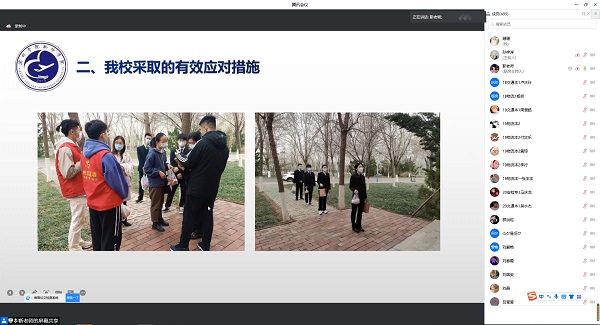 为进一步凝聚抗疫力量,增强BB贝博艾弗森学生抗疫必胜信心,调动起全院力量共抗疫情,坚决构筑校园疫情防控的坚固防线,3月20日晚,BB贝博艾弗森开展“同心抗疫 共克时艰”线上主题教育活动,本次会议由学生科科长靳雪银主持,全体辅导员、班主任以及694名学生同时参加。