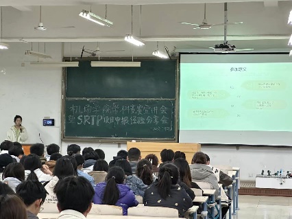 马琪雅、赵佳宁同学讲述参赛意义和项目申报书的书写流程从多个方面充分解答同学问题,让学生更深入的了解大学生创新创业训练计划,帮助其有效解决在项目开展过程中遇到的各种问题。