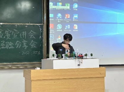 马万里同学通过实物演示和视频讲解为学生呈现创新创业精神,鼓励更多大学生参与创新创业竞赛,要学习如何让自己拥有面向真正创业的思维和学习能力。学生们充分利用这次机会提升自我,鼓励对创新项目有兴趣的学生进行更深入了解。