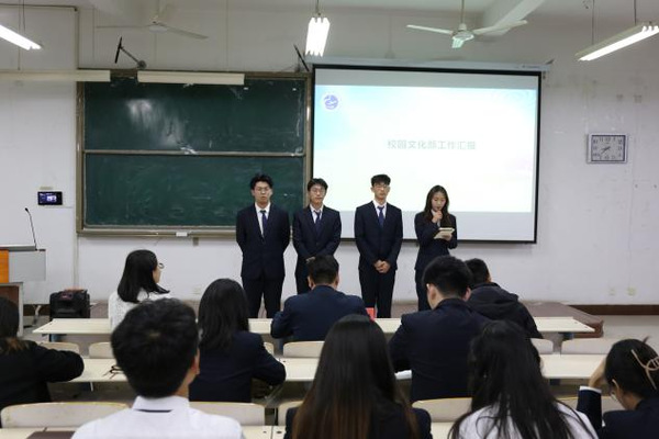 会议开始,首先由学生干部代表史雨萌为大家宣读第九届学生组织干部名单。接着,各部门部长依次上台发言,对上一学年的工作进行总结,并汇报新学年工作计划和展望。随后,第九届学生组织干事代表庞瑞琪上台发言,感谢老师、学长们的信任,今后将不忘初心,砥砺前行,不辜负老师、同学们的期望,以认真负责的态度高效完成每一项工作,更好地为全院同学服务;学生干部代表王炳程对接下来的学生工作提出规划与要求,希望大家遵守纪律,踏实工作,身先士卒,吃苦在前,植根服务同学,期待新一届学生组织更上一个台阶。最后,刘法堂副书记对新干事的加入表示祝贺,并强调作为学生干部应遵循以下四项要求:第一,思想上,要不断加强政治理论学习,提高政治理论修养,把握正确的政治方向;第二,学习上,把学习知识、提高素质放首位,不断提高自己的学习能力和综合素养;工作上,积极为同学服务,主动承担任务,真正做到发挥学生干部先锋模范作用;在生活中,时刻规范自身行为,保持良好的品德和行为习惯,树立好滨州学院大学生积极向上、高度负责的良好道德形象。至此,会议圆满结束。