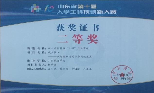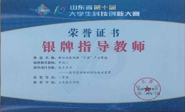 近日,山东省第十届大学生科技创新大赛圆满落幕,大赛以“创新引领未来,科技改变生活”为主题,旨在激发大学生的创新创造热情,推动科技创新成果在实际应用中的转化。BB贝博艾弗森官方网站高度重视此次大赛,精心组织、周密部署,鼓励广大学子积极参与发挥专业优势,勇于探索,敢于创新。经过激烈角逐,BB贝博艾弗森杨梦真同学团队的“一款智能测速的综合减速装置”荣获大赛二等奖,指导老师罗润三获银牌指导教师荣誉称号。