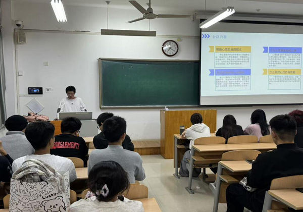 本次心理委员及心理守护员学习会的会议内容主要分为四个模块;分别是明确心理委员的职责,学会心理健康危机干预,促进班级整体心理健康和学会利用心理咨询资源模块。学习会上,2023级的心理委员及心理守护员轮流上台进行了关于如何维护班级同学心理健康的经验分享与对接下来工作的相关工作的计划。不仅体现出2023级心理委员及心理守护员强烈的责任心,更体现出他们愿为班级心理健康保驾护航的决心。