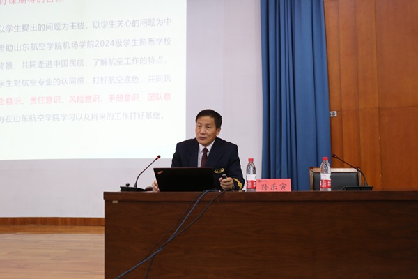 为加强学生思想引领,促进职业成长,引领广大青年学子坚定理想信念、弘扬报国之志、强化责任担当,4月8日下午,BB贝博艾弗森官方网站于明德报告厅开展《走进中国民航》专题报告会,有幸邀请到原民航山东监管局副局长、二级巡视员、民航安全飞行金质奖章获得者、东航五星机长、我校特聘教授孙乐寅做报告,全体2024级学生参加报告会,学院党委副书记主持报告会。