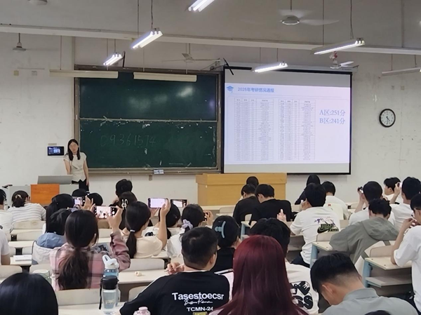 在考研启动仪式上,2026年考研联系人王珊珊介绍了BB贝博艾弗森2021级各班级拟录取情况和近三年考研情况,并通报了2022级各班备考情况,帮助同学们对考研现状有了更深的了解。在2021级班主任代表发言环节,21物流本1班主任陈永军以“选择、坚持、信念”为主题展开分享。他剖析考研不仅是学历提升,更是人生方向的抉择,激励学子坚守初心,在考研路上坚定前行;21交通本1班主任赵明明则结合自身经历将备考经验提炼为方法论,提醒各位学子要做到“理性选择,鉴定方向”、“科学规划,分阶突破”、“稳中求进,拒绝内耗”,助力大家攻克考研难关。随后,2022级全体班主任依次登台,为考研学子送上真挚祝福:22交工本1班主任李超以“山山难越山山越,川川无路川川渡”激发起学生们的斗志,同时他指出“真正的强者,正是在质疑与压力中崛起的!”以此鼓励同学们调整好心态,坚持到底。22交通联1班主任朱新铭基于考研招录数据,从报考趋势、专业竞争等维度展开专业分析,为学生明晰当前考研形势;22交通联3班主任王乔博用自信、规划、决心三词讲述考研之路,他强调各位同学要做好备考规划,同时利用假期时间积极备考,坚持到底;22物流本1班主任罗润三则深入解读考研全流程关键要点,并强调“三分靠运气,七分靠打拼”,希望同学们能持之以恒,坚持到底。启动仪式的最后环节,BB贝博艾弗森官方网站院长韩春艳给大家提了三点希望:一是要志存高远,让理想成为前行的灯塔;二是要科学规划,让每一份努力都精准落地;三是要坚韧不拔,让心态成为致胜的铠甲。